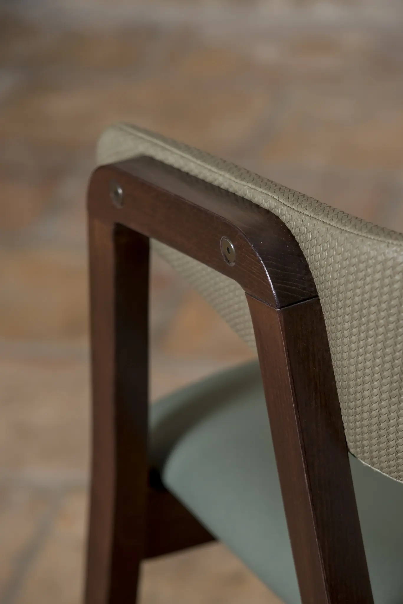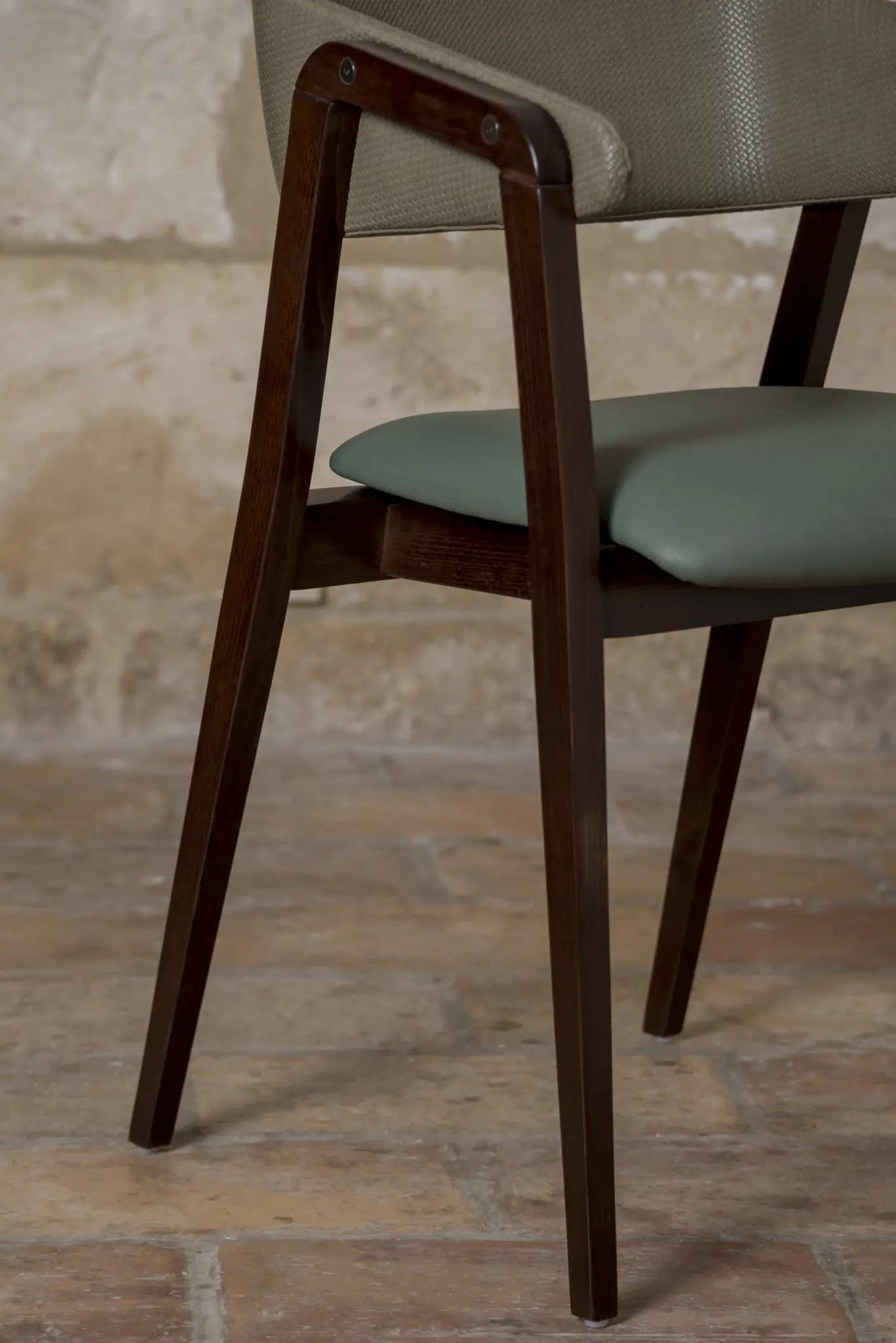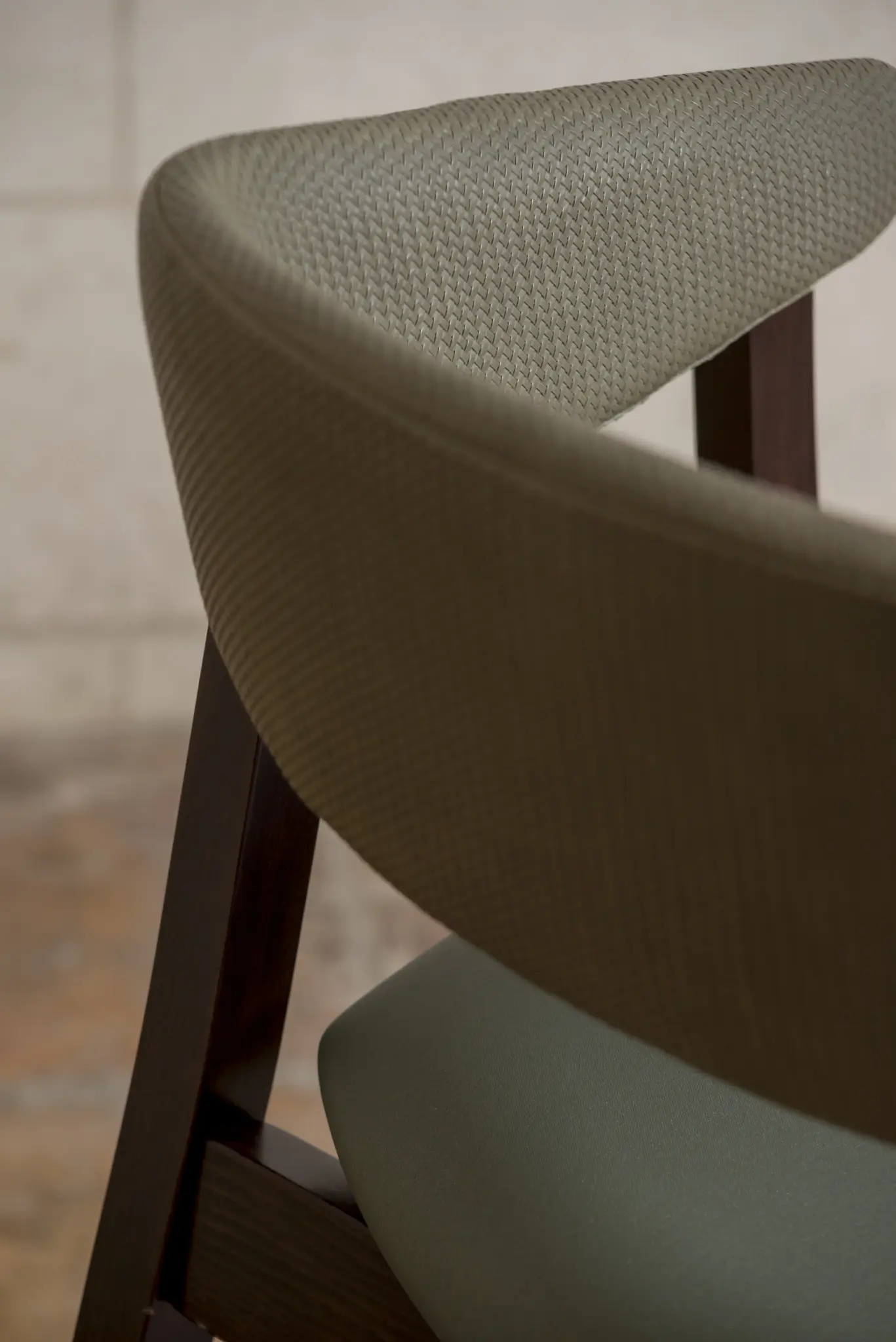 Son dossier courbé en bois massif épouse délicatement la forme du dos d’un tissu doux et raffiné, offre une expérience d’assise agréable.