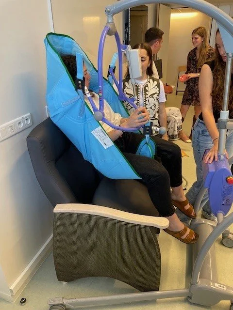 La preuve (photos avec légende du mobilier utilisé), notre mobilier est utilisé pour simplifier les situations de transfert en chambre. Conçu pour assister le déplacement spontané de se lever et de s’asseoir, notre fauteuil Ergomodel Easy-Up préserve ains le soignant lors de tâches à risques.
