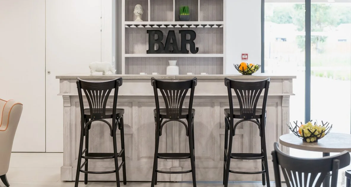 L’esprit très chic rappelle l’ambiance bistrot, ce qui était une vraie volonté de l’établissement et même d’une élue de la ville. On retrouve cet esprit dans les chaises, les tabourets mais aussi les tables.