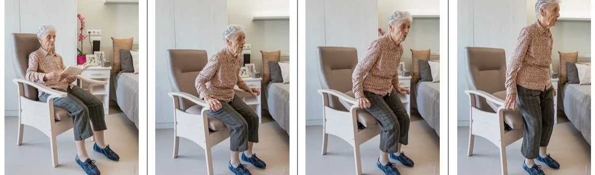 Et surtout, elles bénéficient toutes de notre fauteuil releveur ergonomique et mécanique, l’ergomodel Easy-Up. Marie, charmante résidente très dynamique s’est prêtée au jeu du mannequinat pour faire la démonstration du fauteuil. L’ergomodel Easy-Up est un concept innovant qui permet d’assister le déplacement spontané de la personne pour se lever et pour s’asseoir. C’est une aide révolutionnaire pour le maintien de l’autonomie.