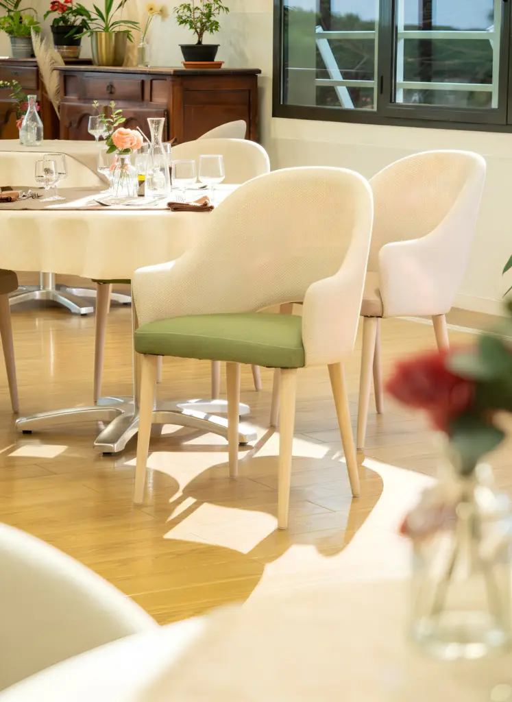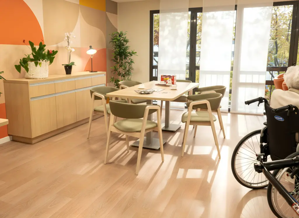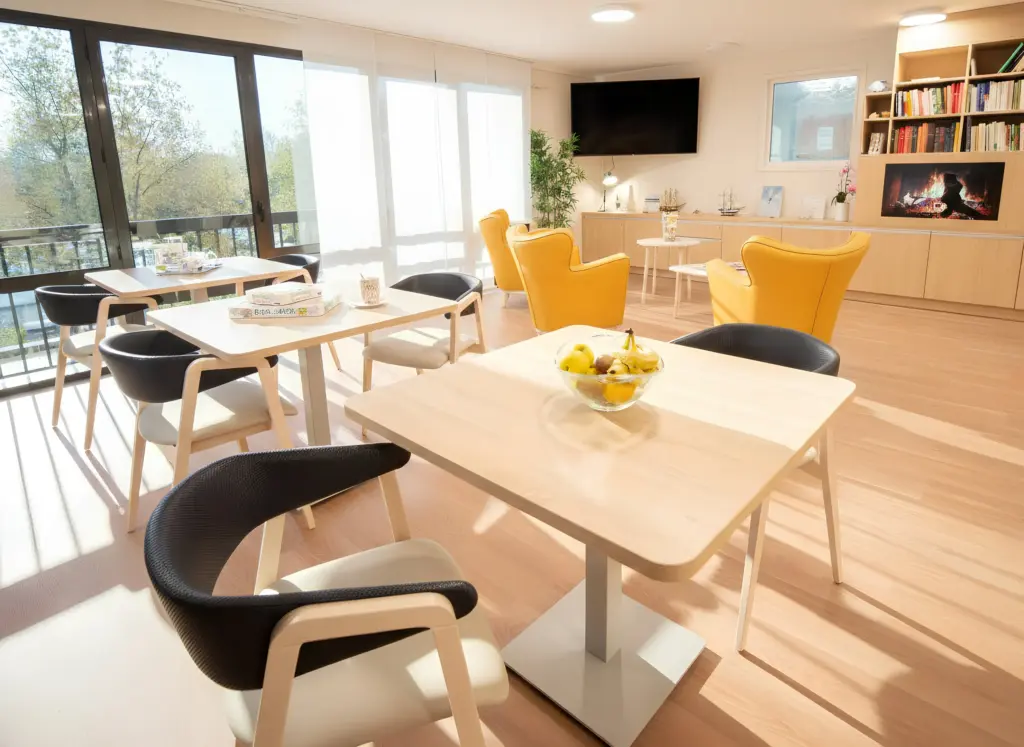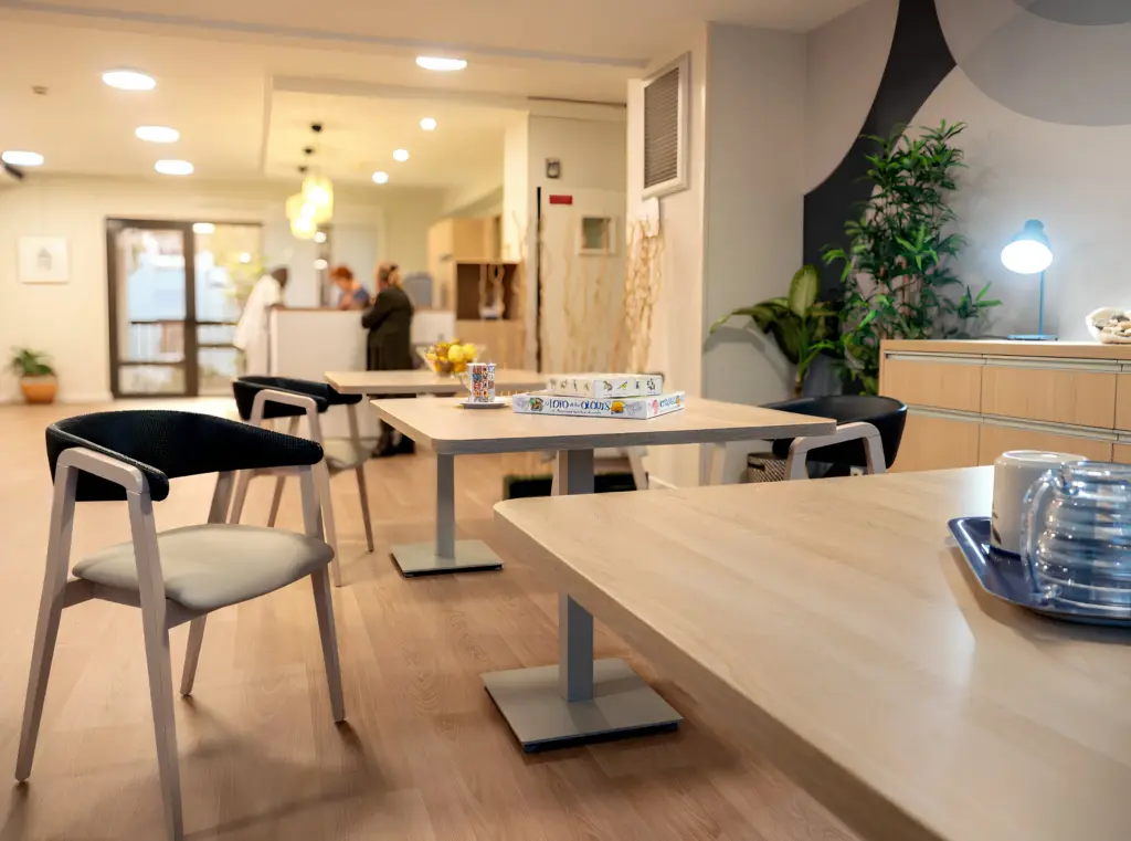 Dans chacune des pièces que nous traversons, ce n’est pas seulement le mobilier qui se révèle, mais tout un cadre de vie conçu pour celles et ceux qui y résident. Chaque table, chaque fauteuil, chaque trait de bois clair a été choisi pour favoriser les échanges, soutenir les gestes du quotidien et offrir aux résidents un lieu où l’on se sent bien, en sécurité et surtout… véritablement chez soi.