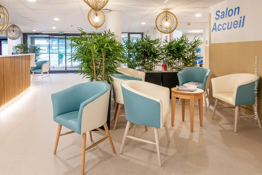 Pour cette installation, nous avons sélectionné une gamme de produits spécialement conçus pour apporter confort, esthétique et durabilité aux espaces de soins. Le modèle Sorriso, par exemple, séduit par son design enveloppant et son confort, idéal pour créer un espace de convivialité. Jelly, avec son design moderne, ajoute une touche de dynamisme.
