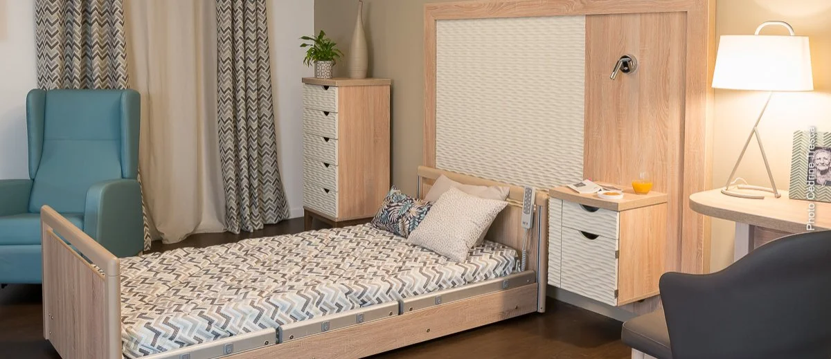 Nouveauté 2023, notre lit Ergomodel Flexicare qui accompagne le mouvement de se lever pour sortir du lit grâce à la barrière 3 segments Levitas, et qui réduit fortement les conséquences liées à une chute avec sa position ultra-basse de 11cm.
