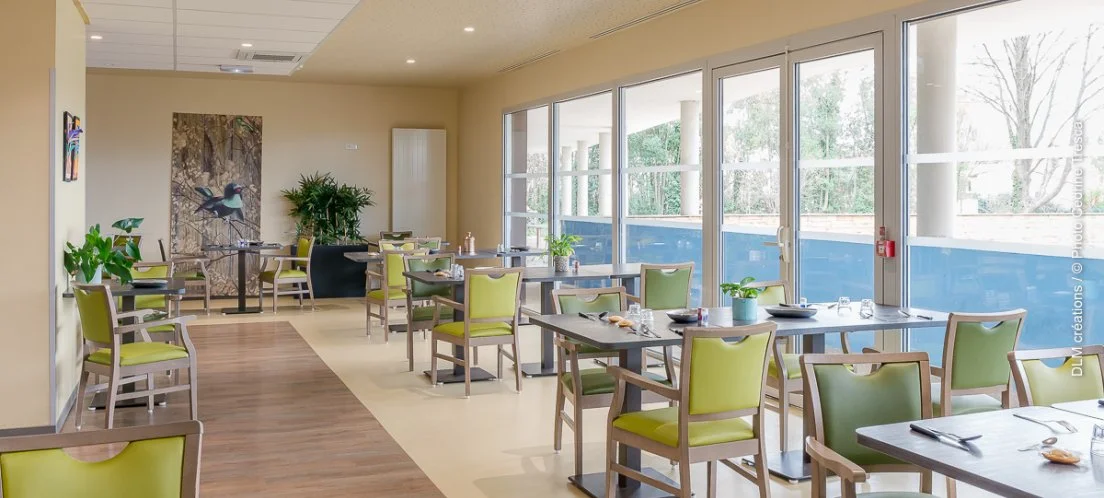 L’entrée d’un EHPAD est souvent un lieu très investi par les résidents. La zone d’accueil de l’EHPAD Jean Péridier nous fait inévitablement penser à la place d’un village où la convivialité est le maître mot.